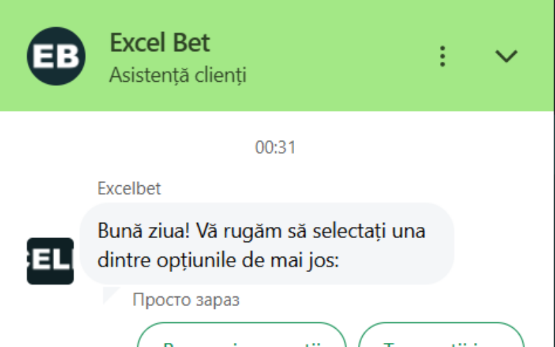 Dacă doriți asistență promptă, cea mai bună opțiune este live chat Excelbet. Poți interacționa direct cu un operator prin live chat Excelbet, iar problemele sunt de obicei rezolvate în câteva minute.